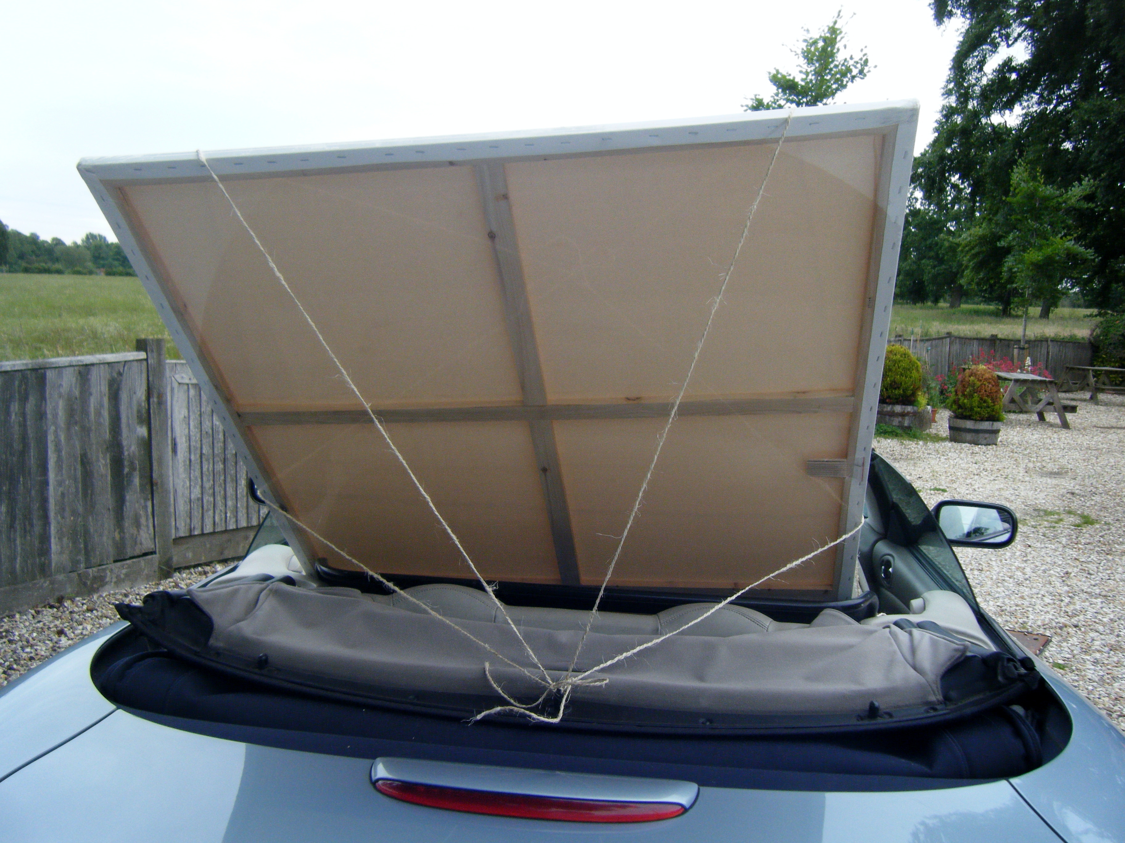 OK, so overcoming challenges enriches our lives! … Today offered a few transportation challenges!! The commission is very exciting, sourcing the canvas was fine, … getting it into the car was amusing for everyone else, driving through rush hour Southampton was cautious … now the fun will begin with a VERY LARGE paintbrush!!