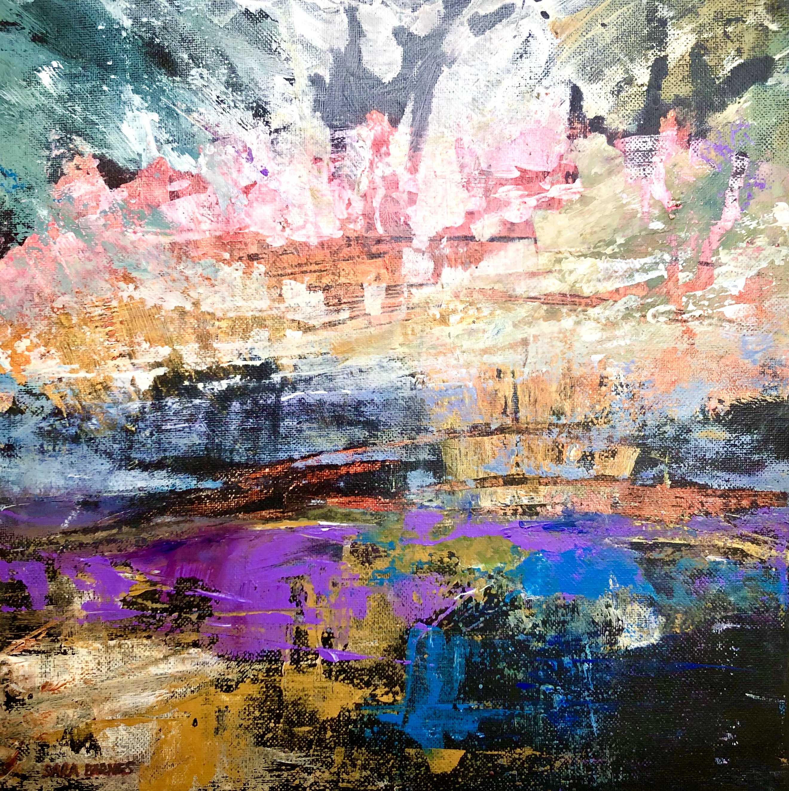 Original on canvas. Framed in white float frame. 43cm x 43cm £300