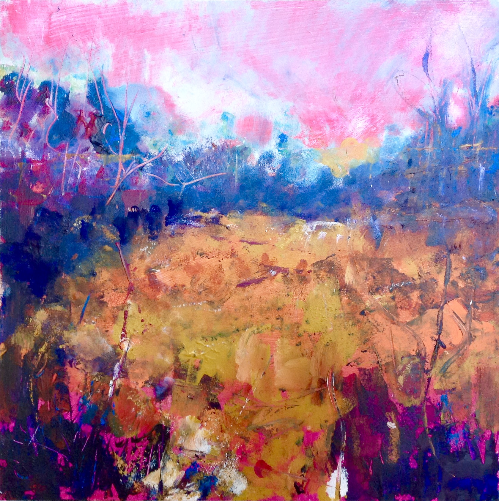 New Forest Gold Acrylic on board framed 40cm x 40cm £300